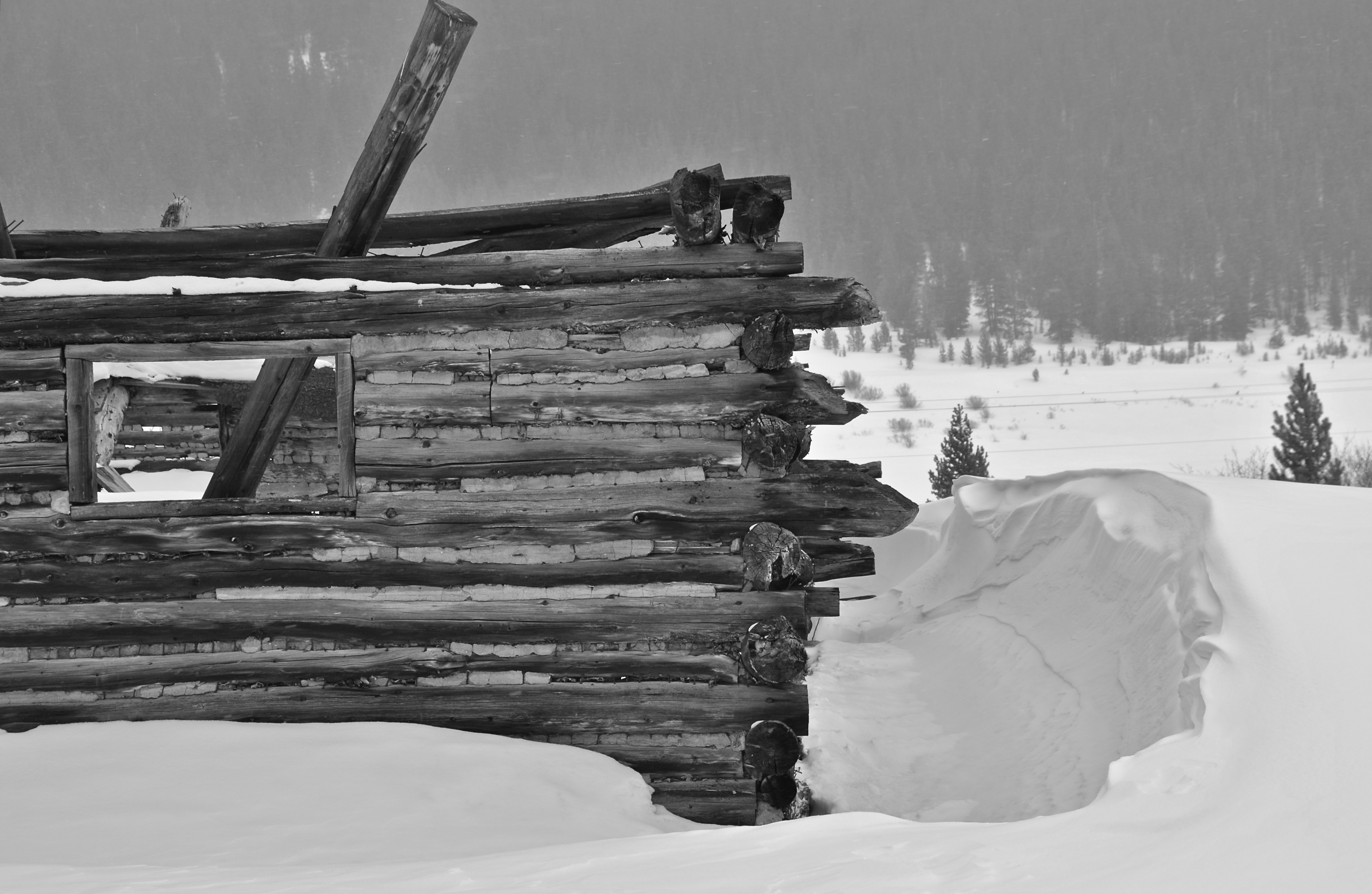 April 16, 2011 | Categories: art, landscape, nikon camera | Tags: 1870's, black and white, cabin, colorado, historical site, log cabin, snow, valley, vintage, wooden | Leave a comment
